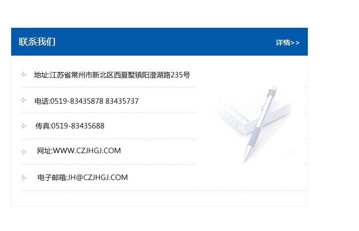 地址:常州市新北區友邦商務大廈1幢16、17層  電話:0519-85101652  傳真:0519-85112595  郵編:213022  網址:www.cz-jiayue_cn.afxjsw.com  郵箱:xiajifengaa@163.com